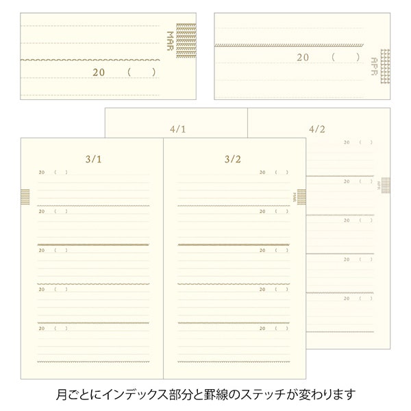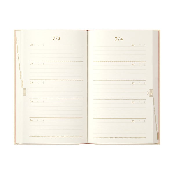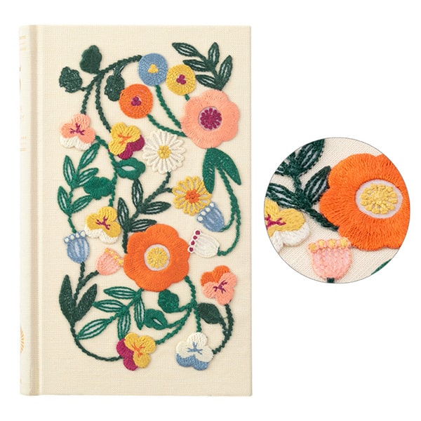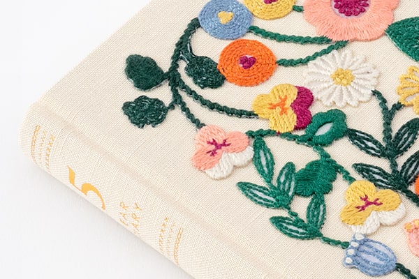- Midori diary for 5 years, with the cover lined with fabric and raised embroideries.