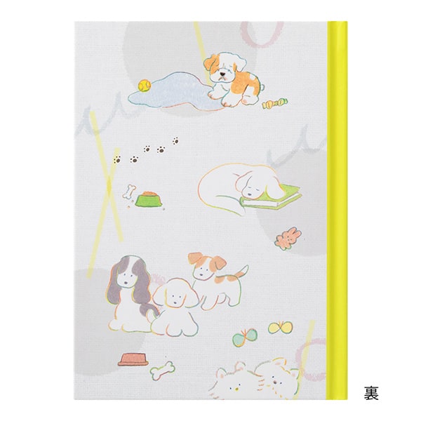 - 192 pages with colored dog prints on the edges and striped pattern.