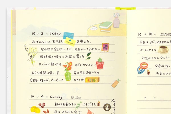 - On each page the space is separated to write down 2 days.