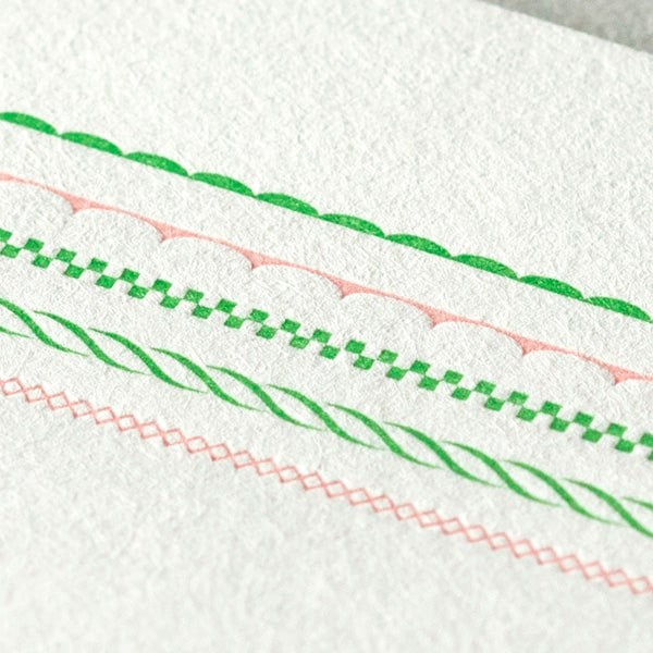 - This set includes 4 envelopes and 8 sheets of patterned paper printed using the letterpress printing technique.