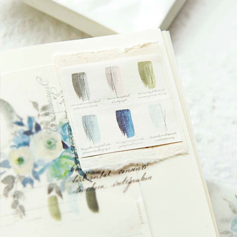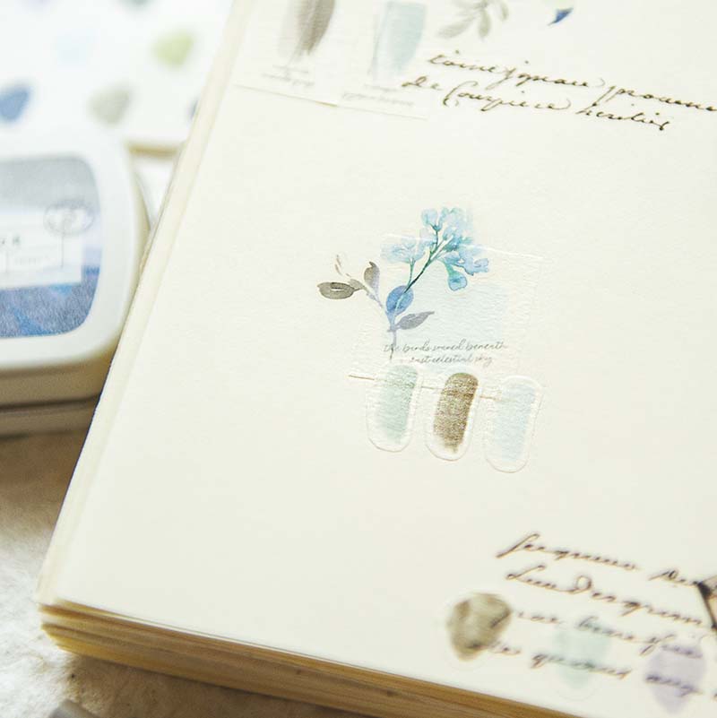 - Consiste en una cajita de metal con 20 hojas de pegatinas de estilo acuarela.