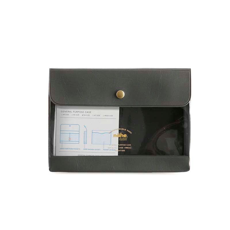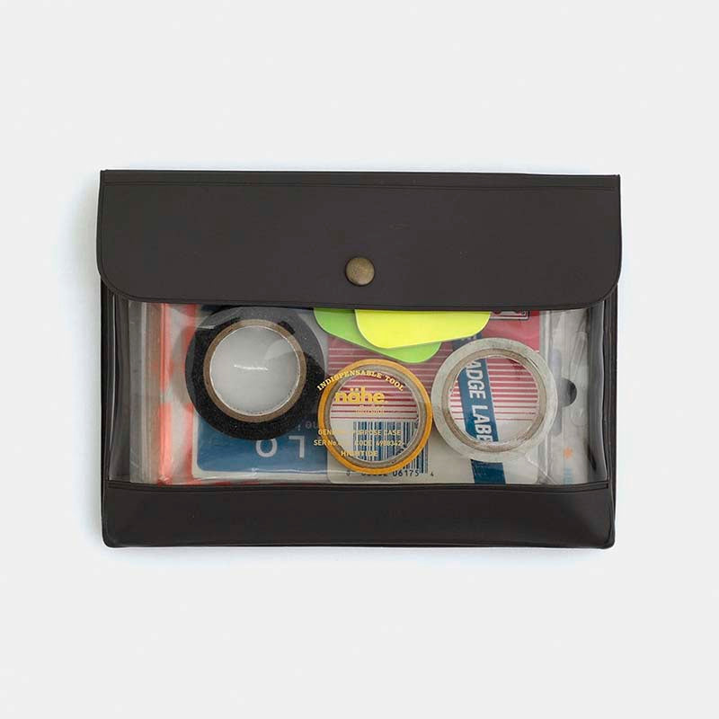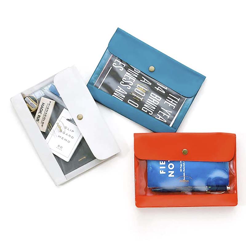 - Funda de plástico de tamaño A6 con compartimentos interiores y exterior.