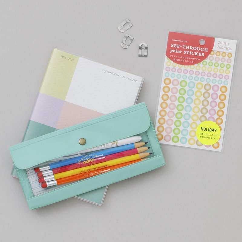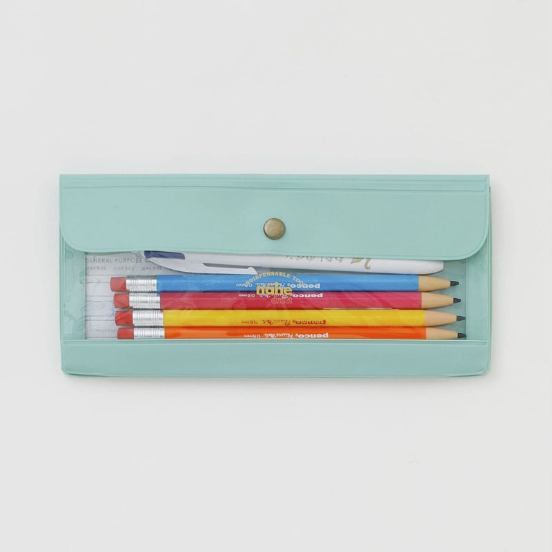 - This pencil case has a general compartment for storing pens and other writing materials, plus a divider in the front for cards, and an open pocket in the back.