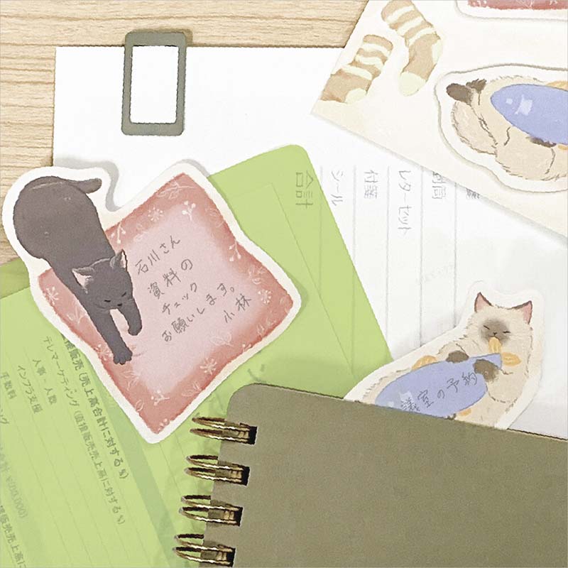 - Notas adhesivas decorativas con estampado y forma de gatos.