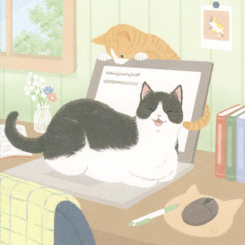 - Postal con ilustración de gatos.