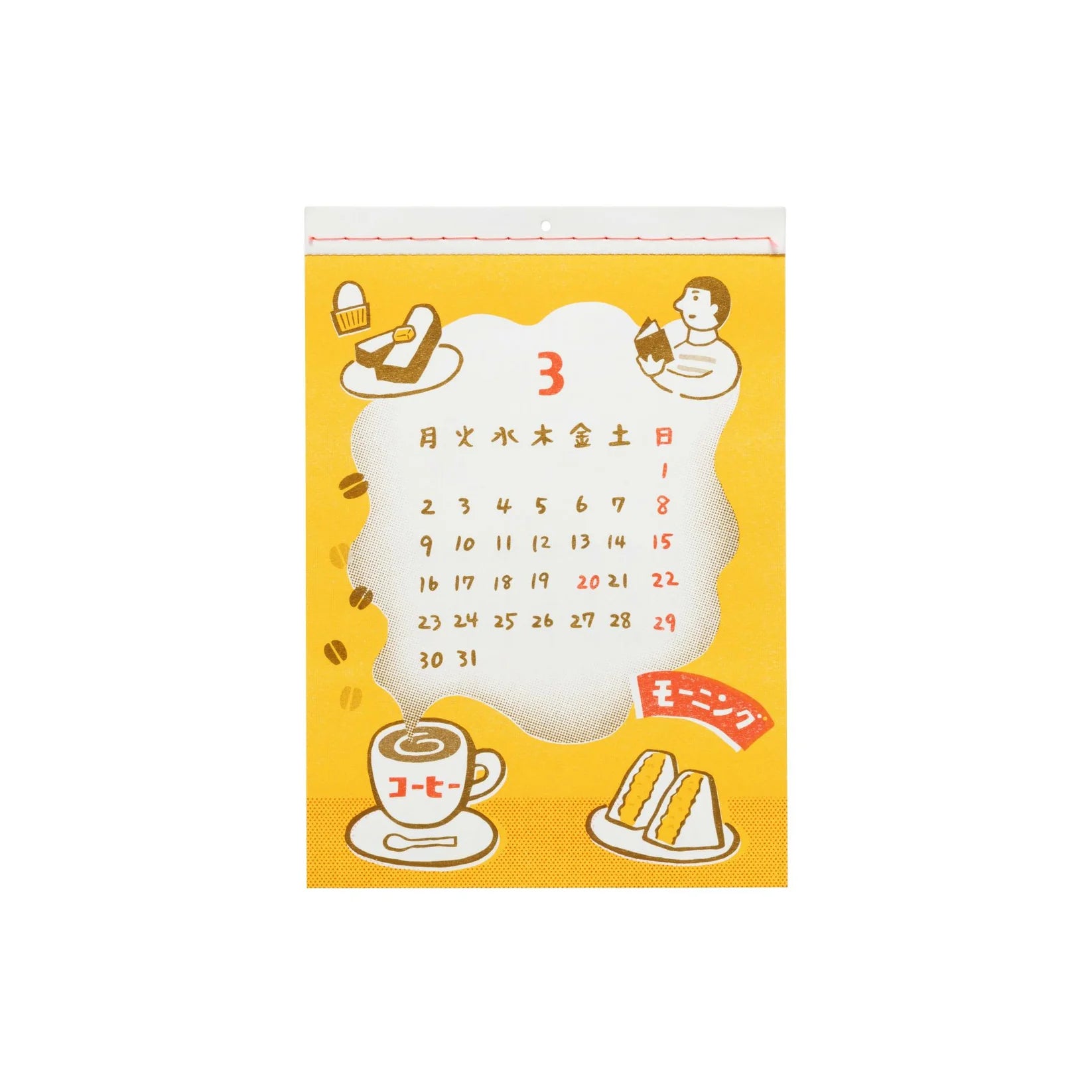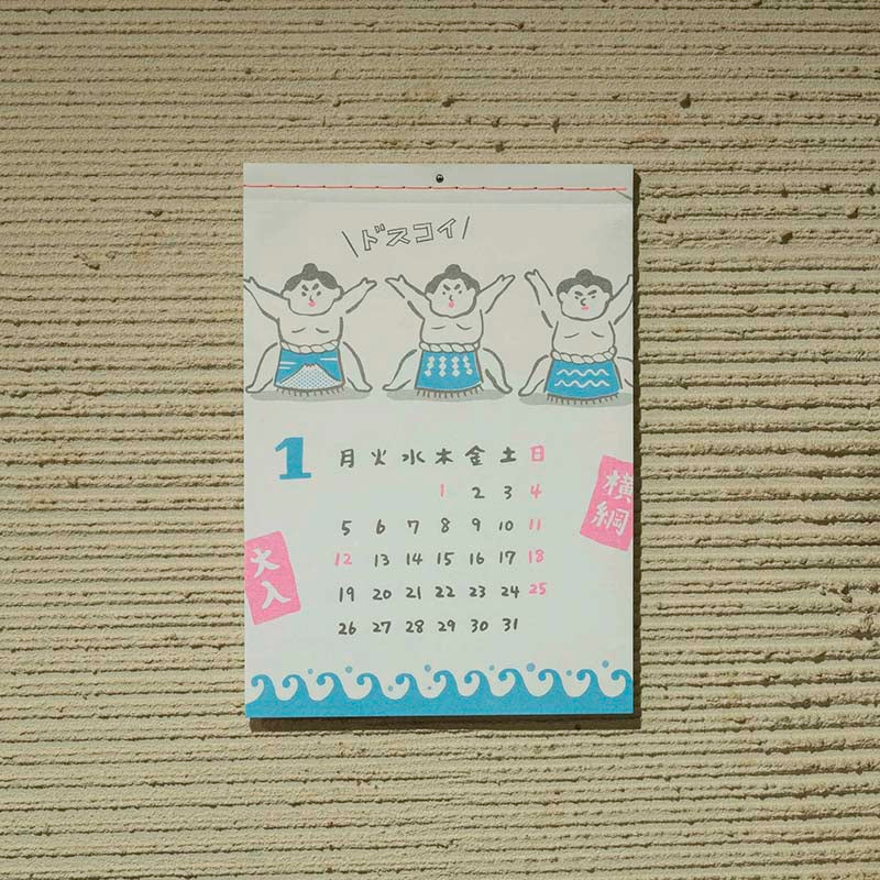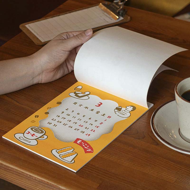 - Realizado con impresión risográfica, el calendario transmite la sensación única de las piezas impresas a mano, con características como «desalineación de la impresión» y «desvanecimiento».