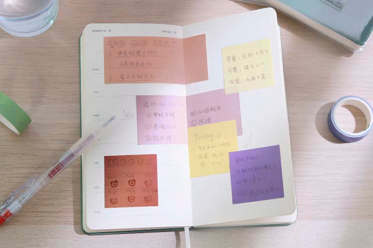 - Include 1 rectangular notes and 2 square models, the 3 of different colors.