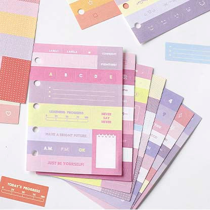 - Sticker sheets have 5 trocured holes on the left side, they can be placed inside rings folders.