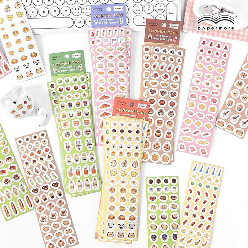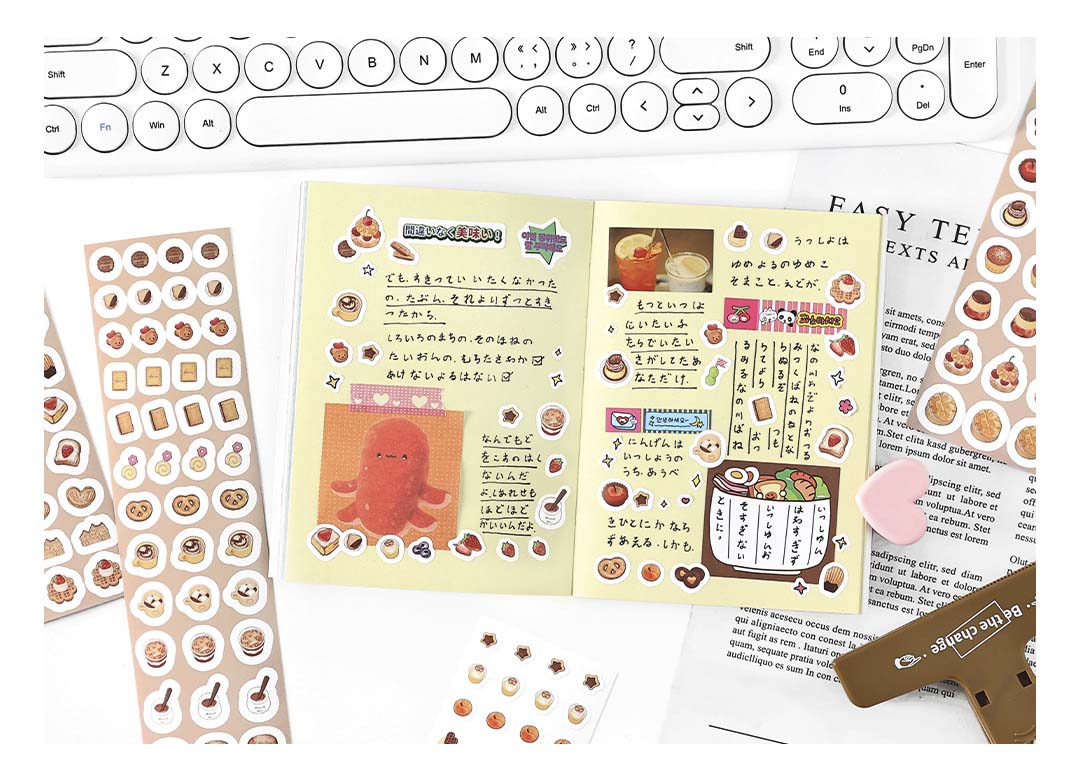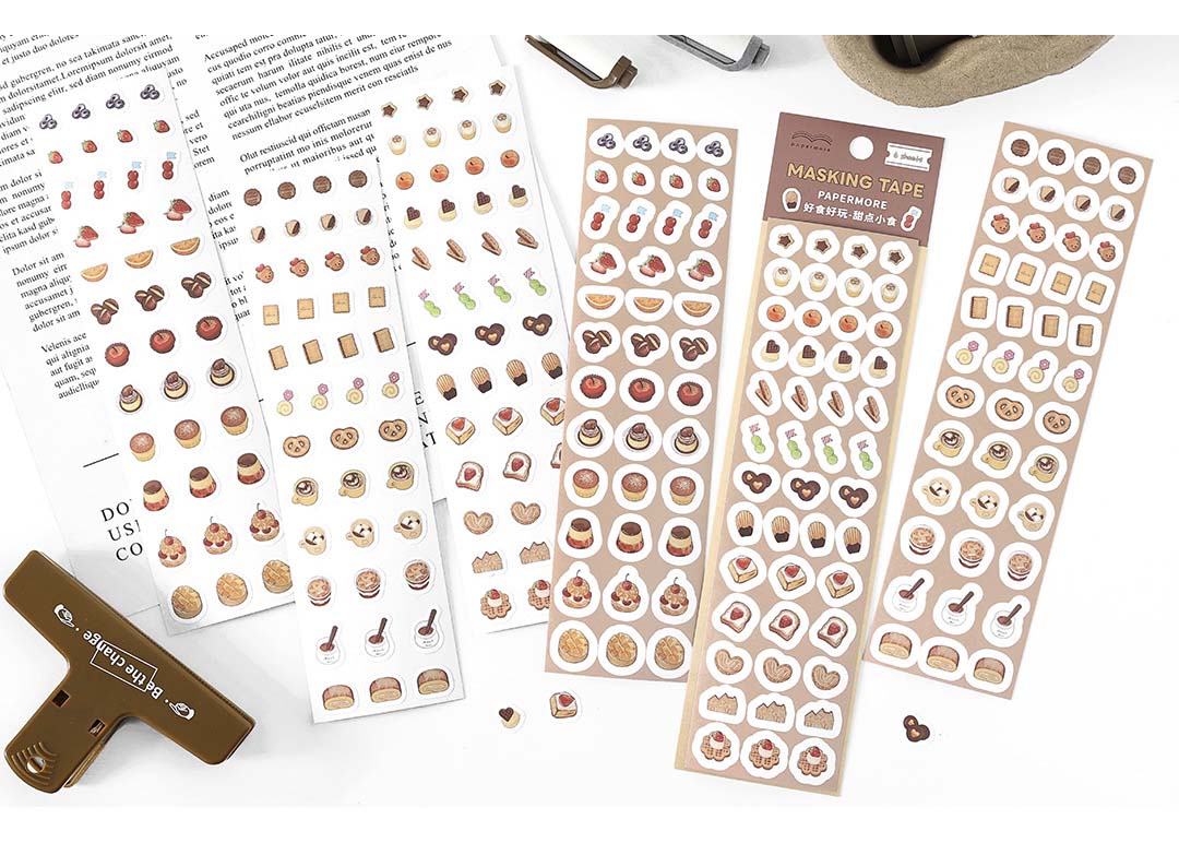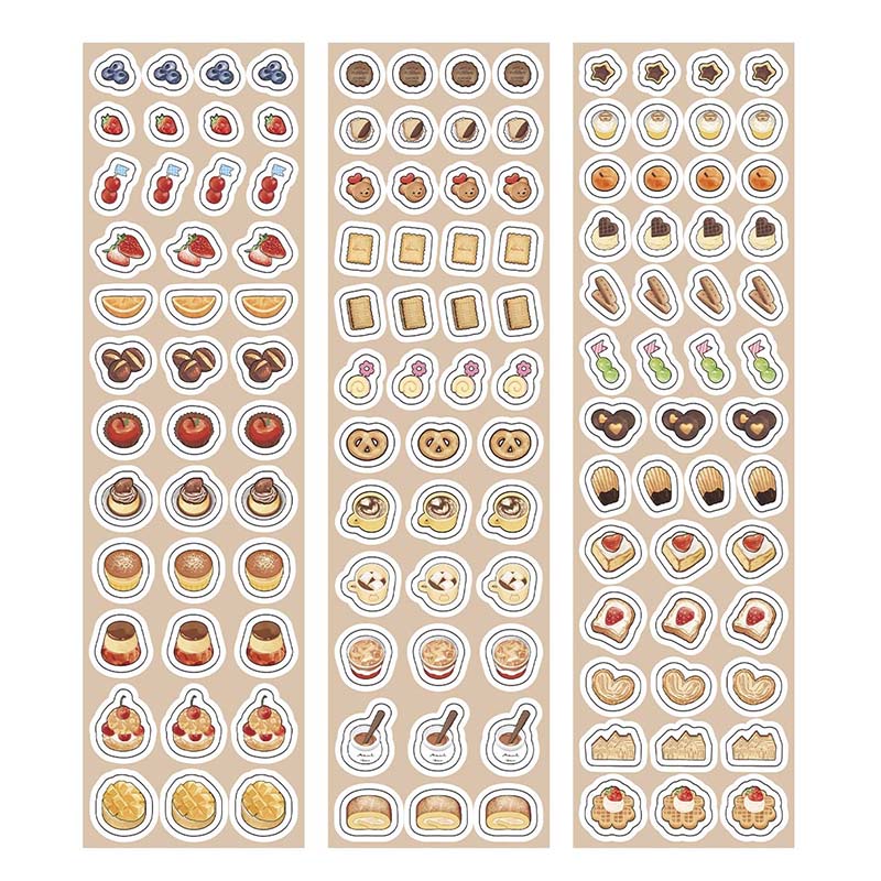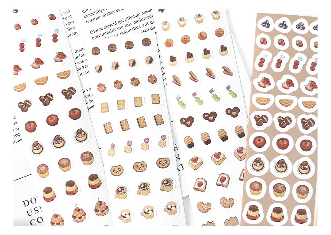 - Set de 3 hojas de pegatinas con estampados de postres.