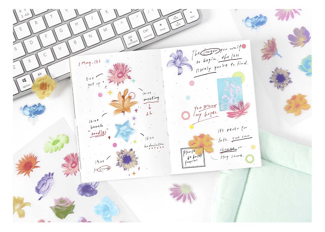 - Set de 2 hojas de pegatinas decorativas con estampado de flores.