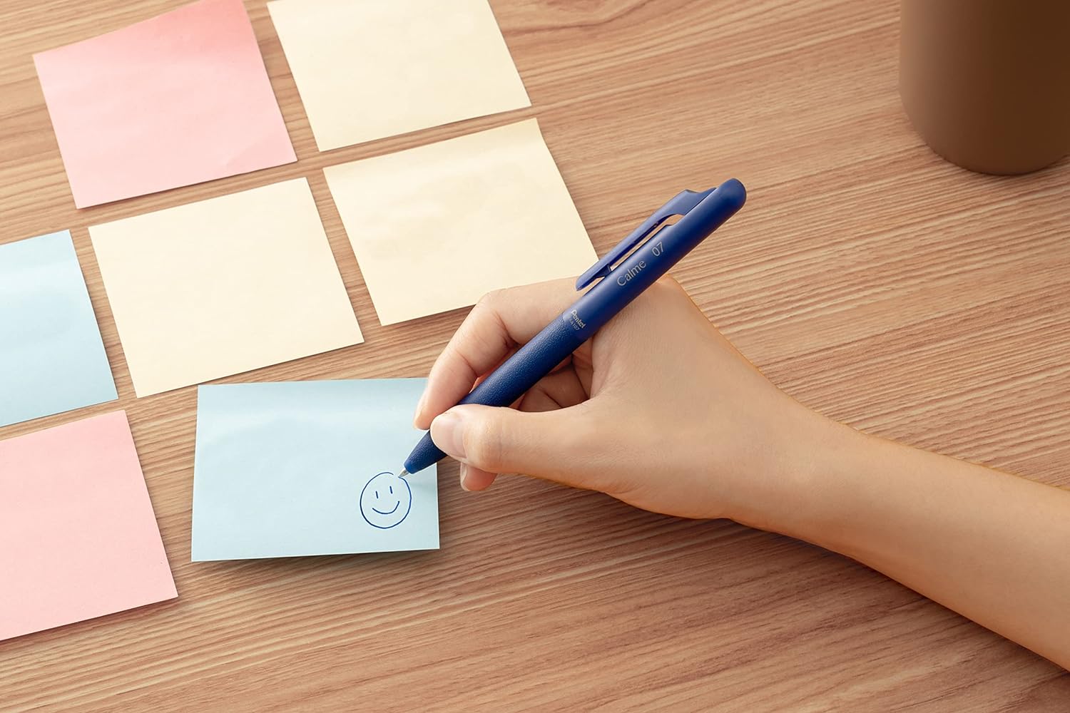 - It is a pen designed to be silent when clicking when removing and retracting the tip.