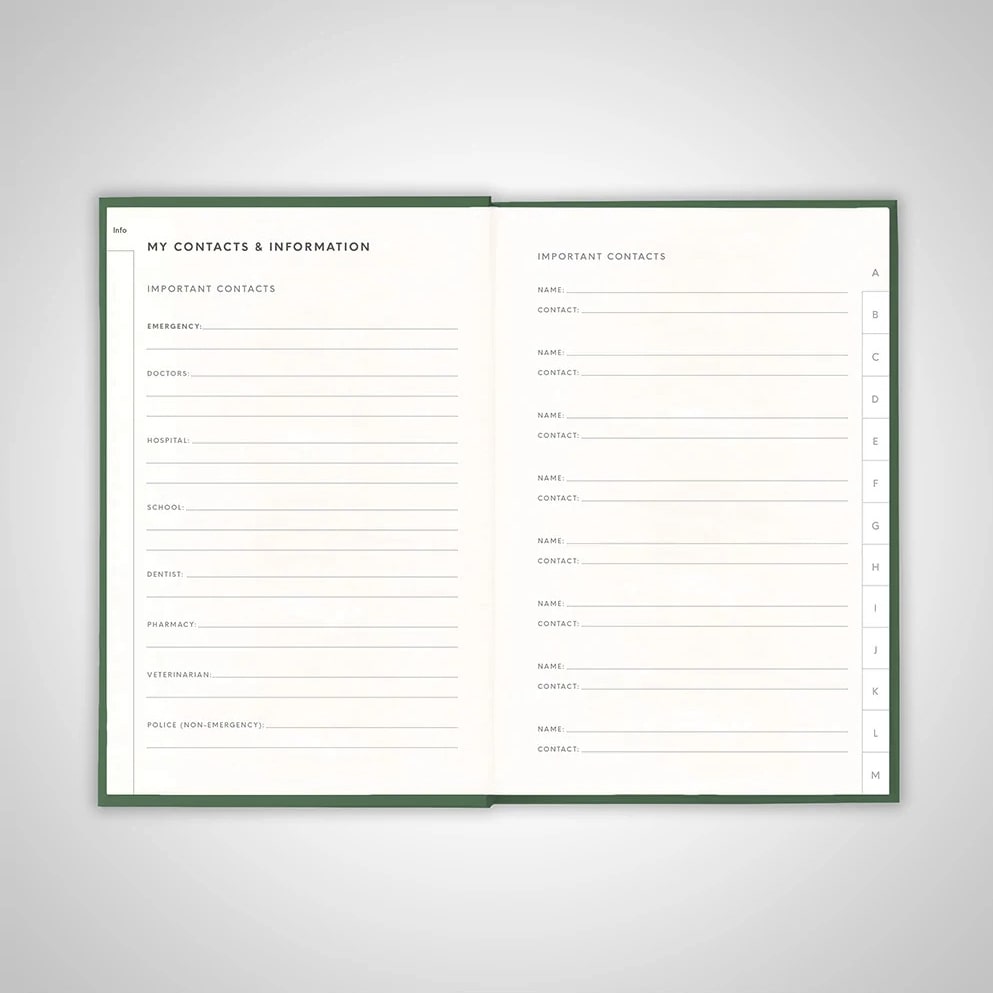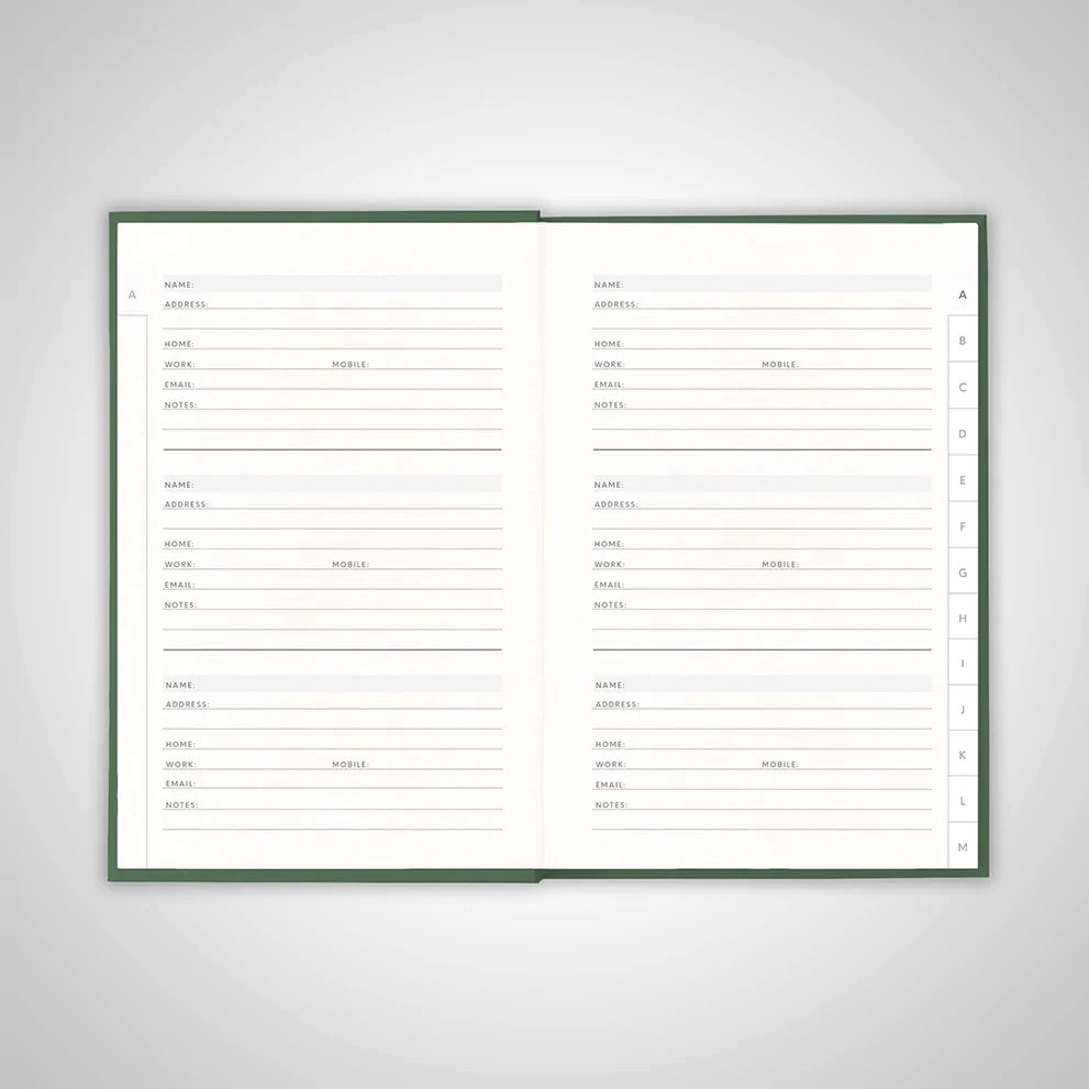 - Notebook with separations by letters of the alphabet to write down addresses and telephone numbers.