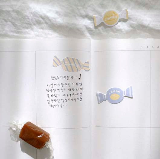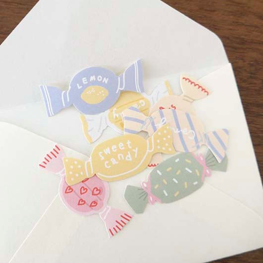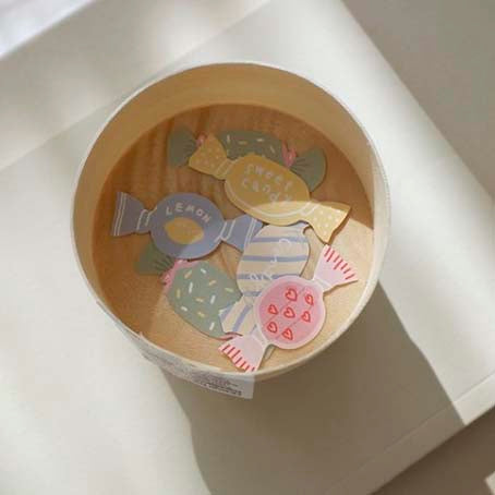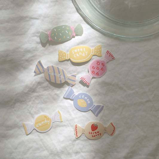- Decorative stickers trimmed with candy print.