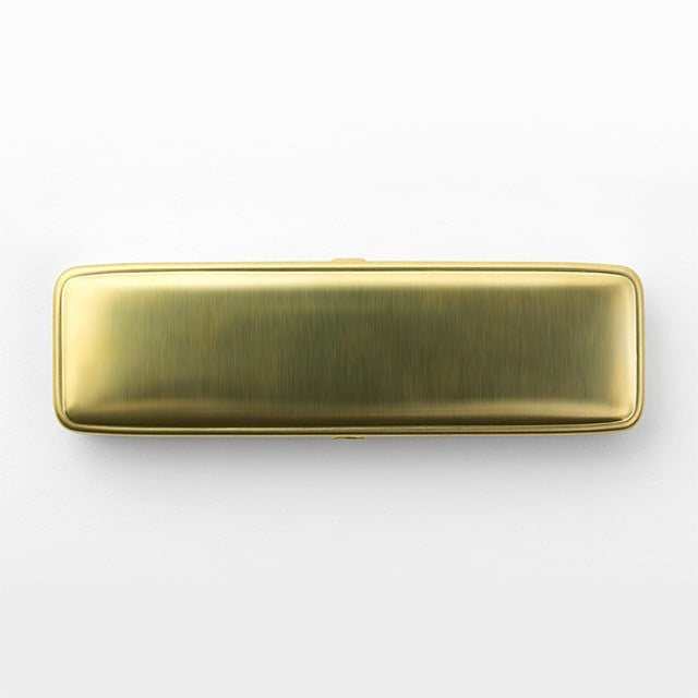 - Pen case with a minimalist design and produced from a solid sheet of pressed brass.