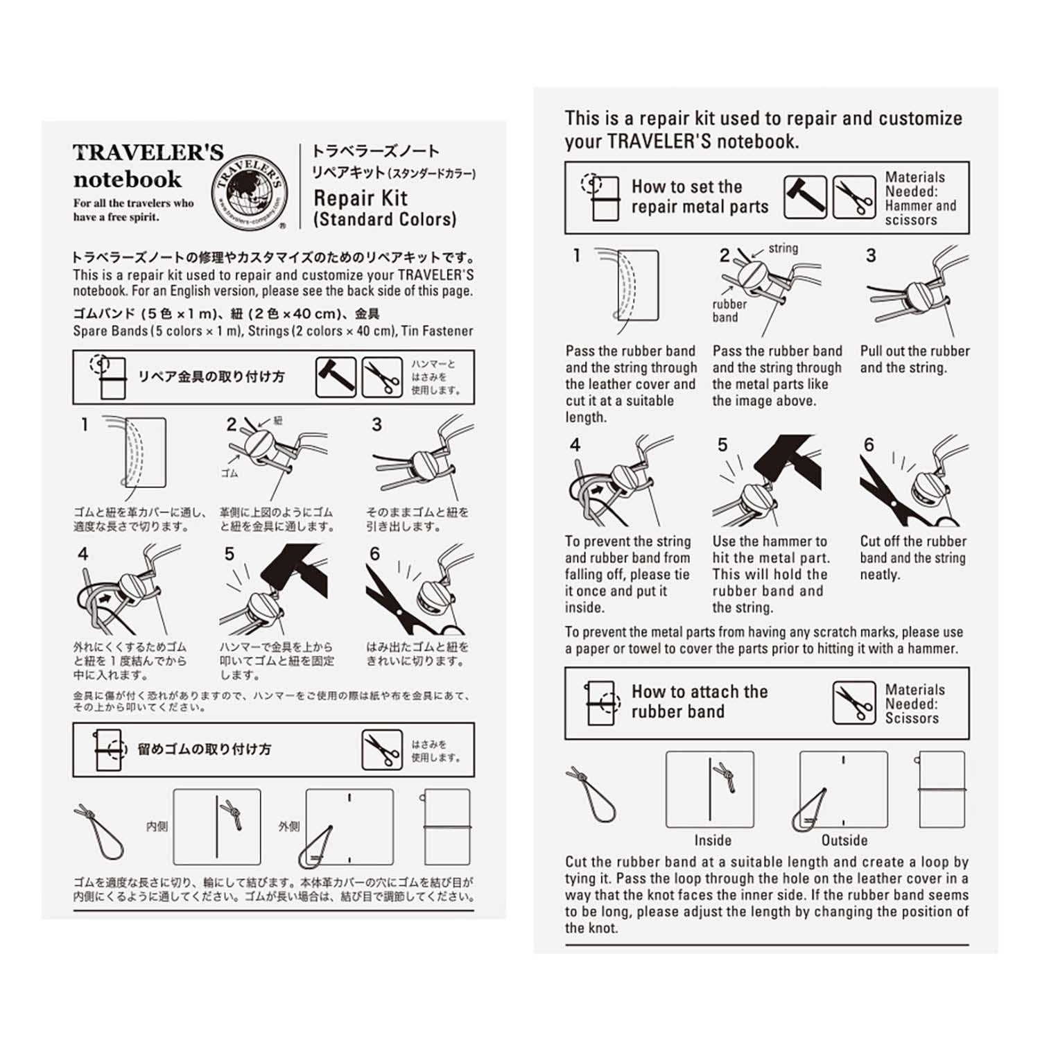 - 6 elastic bands that can be used to replace the central rubber band that holds the notebook and refills, or to join different refills