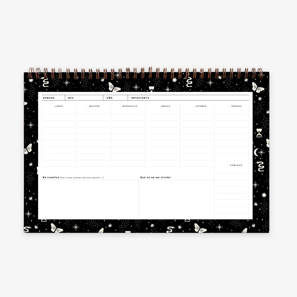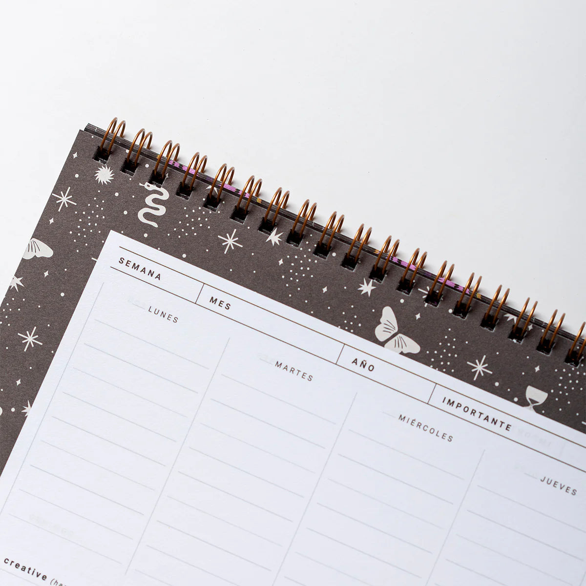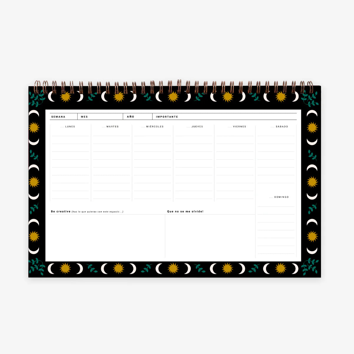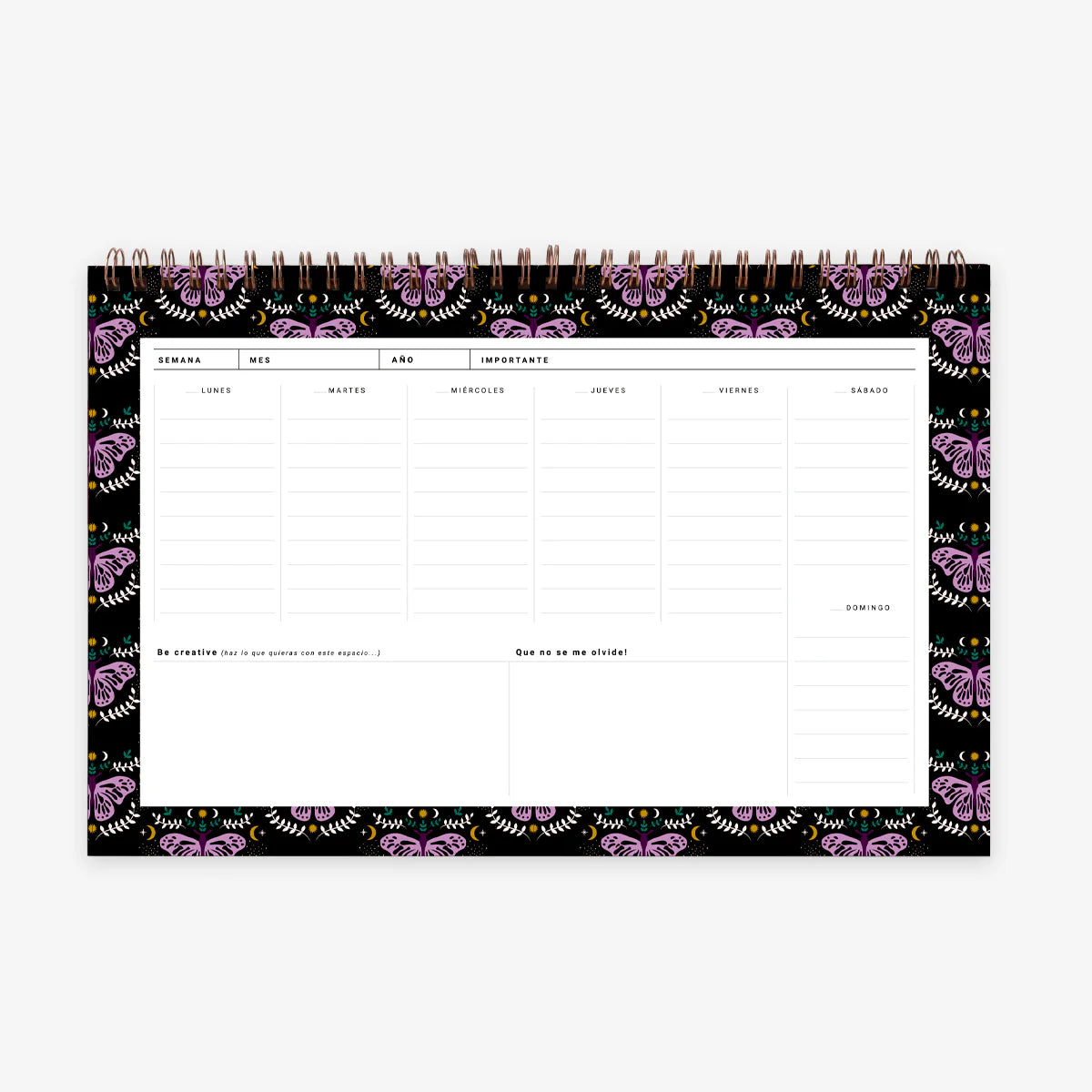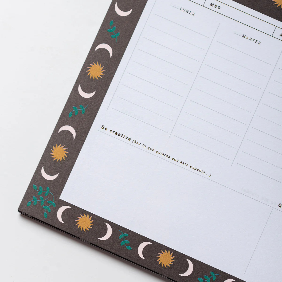 - Each page has space for the days of the week, creative space and space for notes.