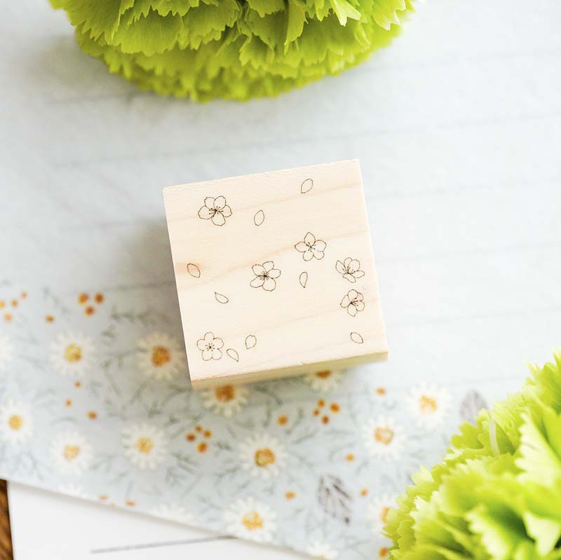 - Sello de goma con la base de madera con estampado de pétalos de flor Sakura.
