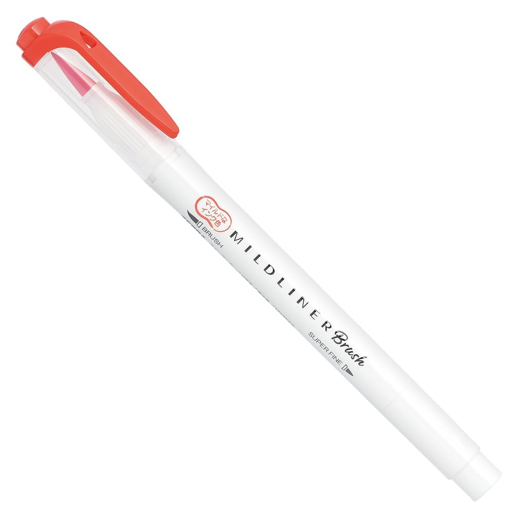 - Pack of Zebra Mildliner markers with flexible brush tip and felt tip.