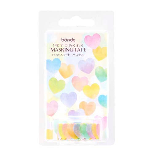 - Pegatinas individuales en formato rollo con estampados de corazones de colores pastel.
