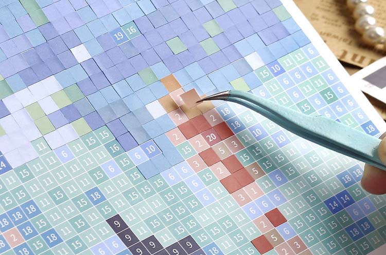 - Solo tienes que enganchar las pegatinas sobre el número correspondiente para formar una pieza con efecto mosaico.