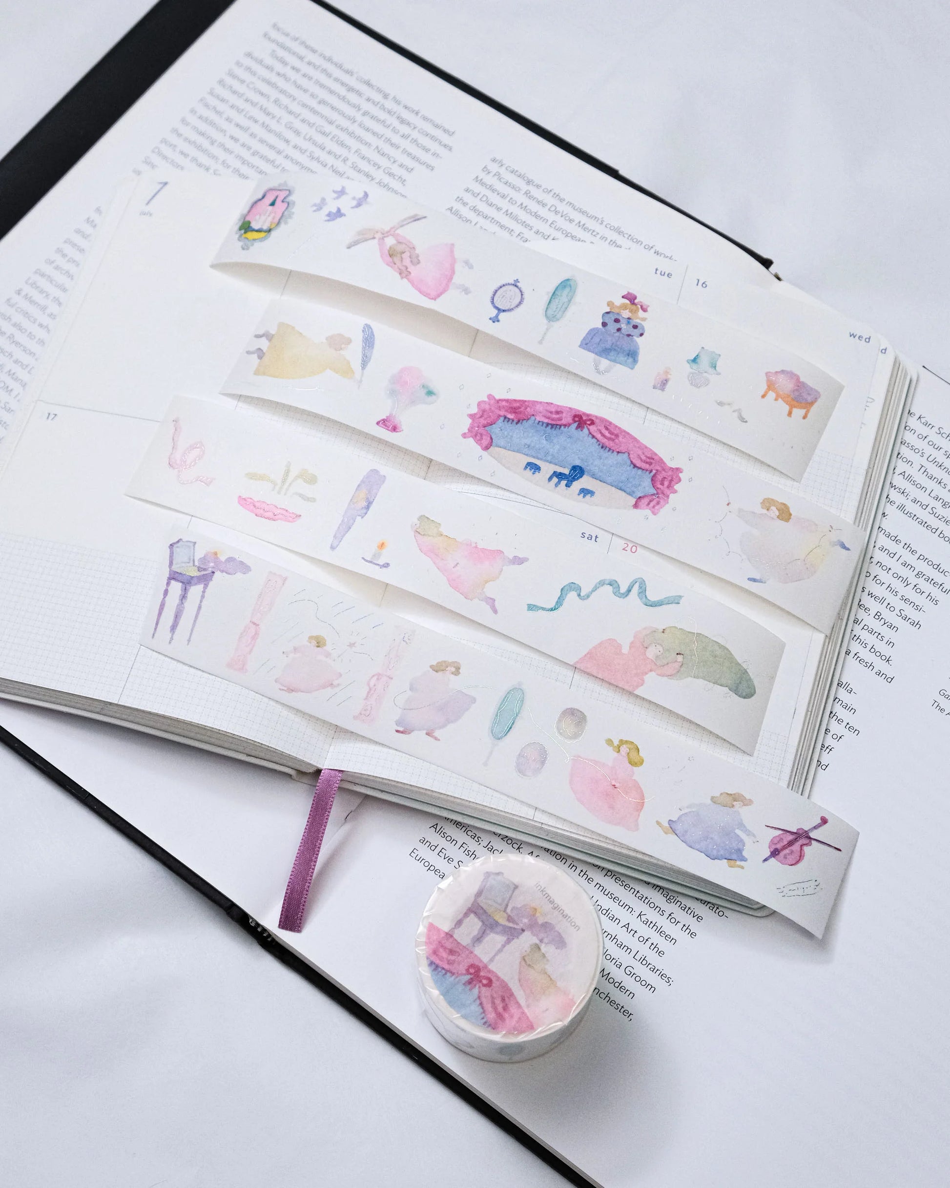 - Cinta decorativa Washi Tape con ilustraciones de la ilustradora hongkonesa Dodolulu.