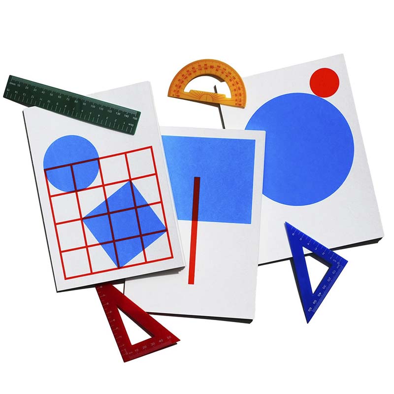- Cubierta con formas geométricas aplicadas con la técnica de serigrafía.