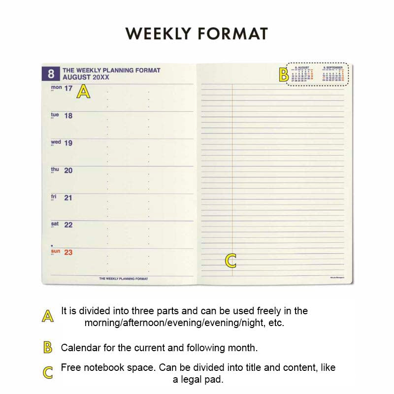 - Agenda japonesa semanal Hightide Minute Manager Left en tamaño A5.