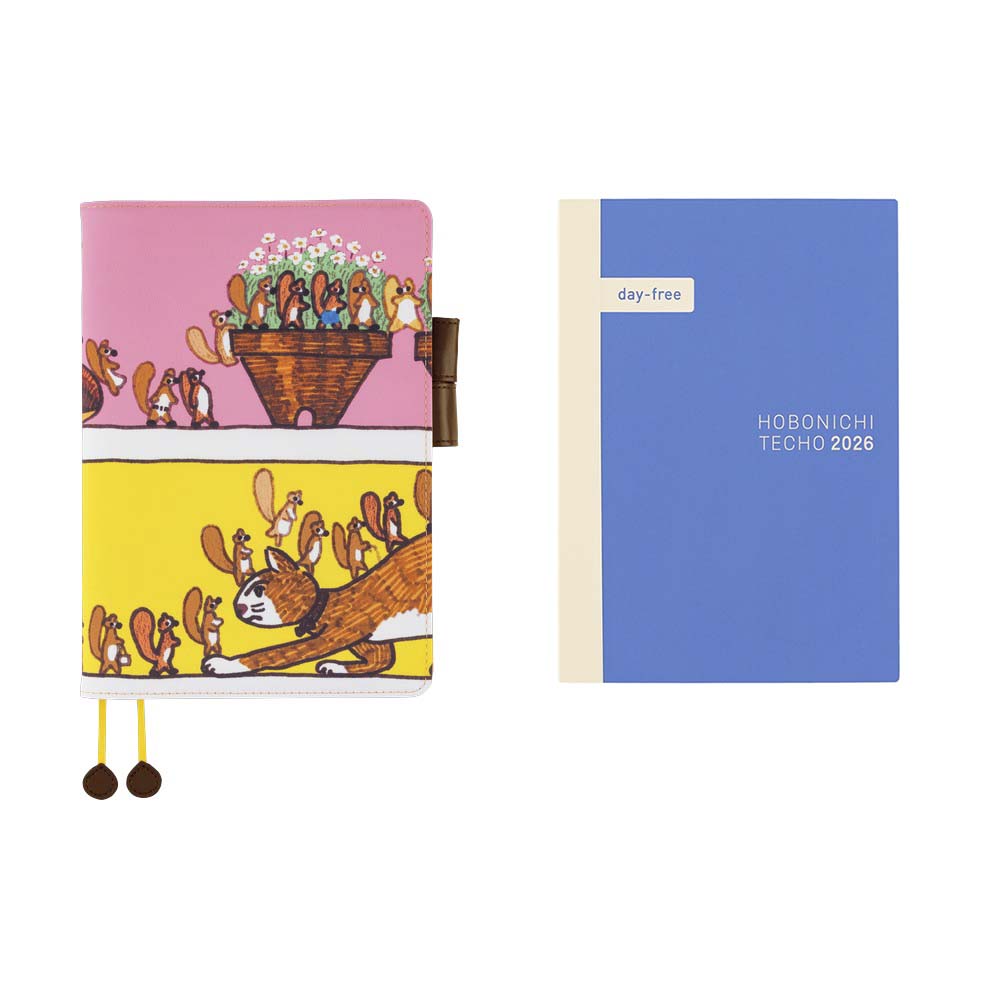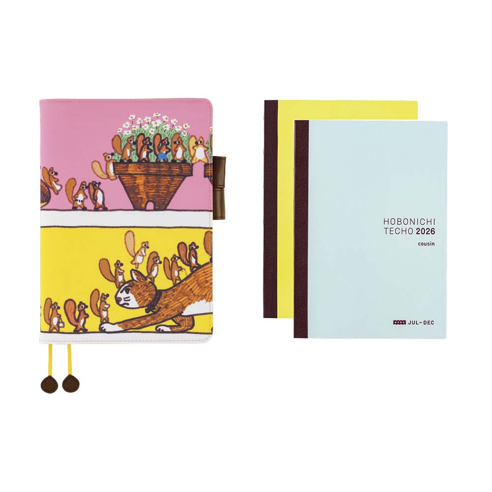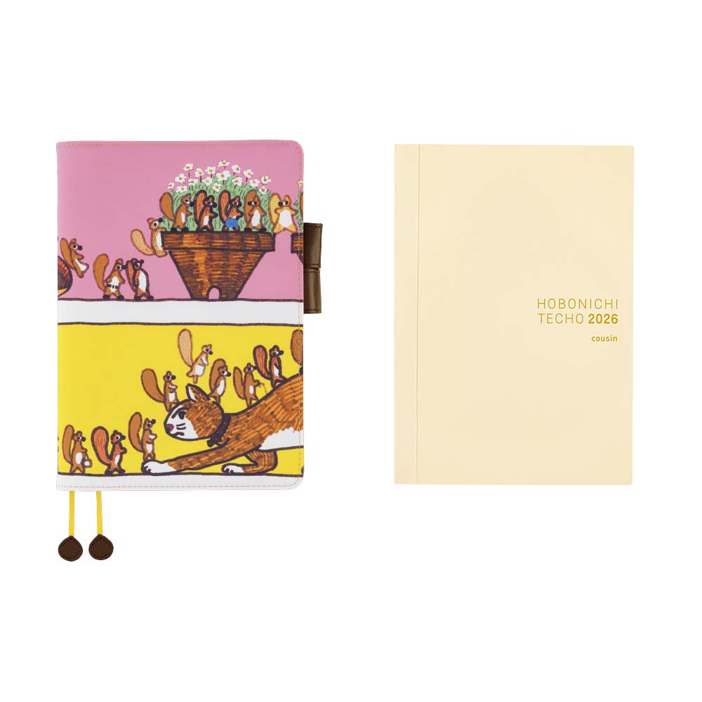 - Funda y agenda Hobonichi Cousin A5 2026, colección 100%ORANGE: Where’s the Squirrel Going.