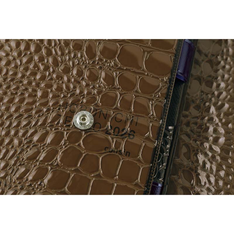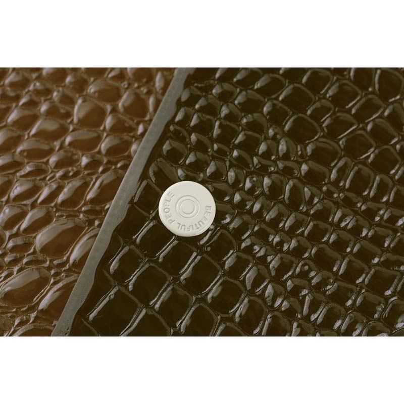 - La funda presenta un patrón con relieve de cocodrilo sobre PVC. Al combinar la transparencia del PVC con la textura que simula cuero natural, este diseño captura el característico sentido del contraste lúdico de la marca "beautiful people".