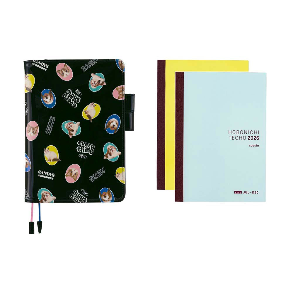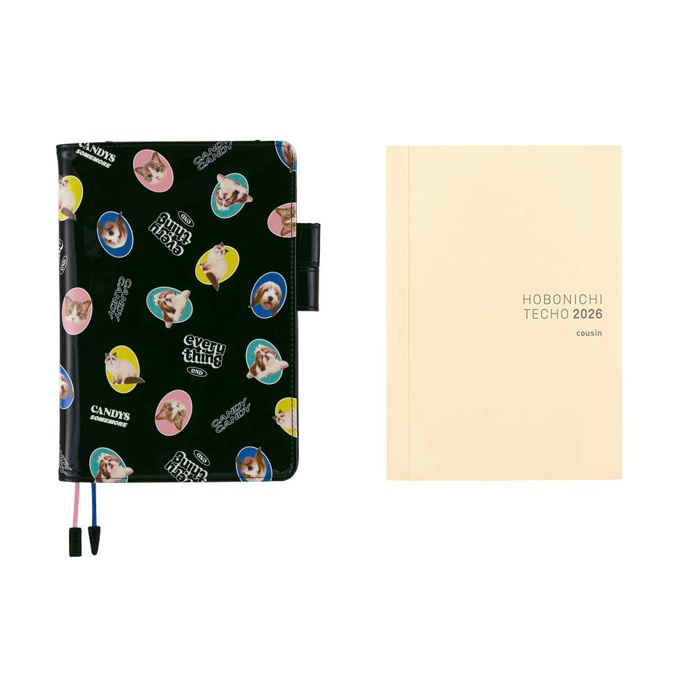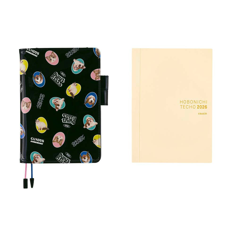 - Funda y agenda Hobonichi Cousin A5 2026, colección Candy Stripper: Random Dog & Cat (Black).