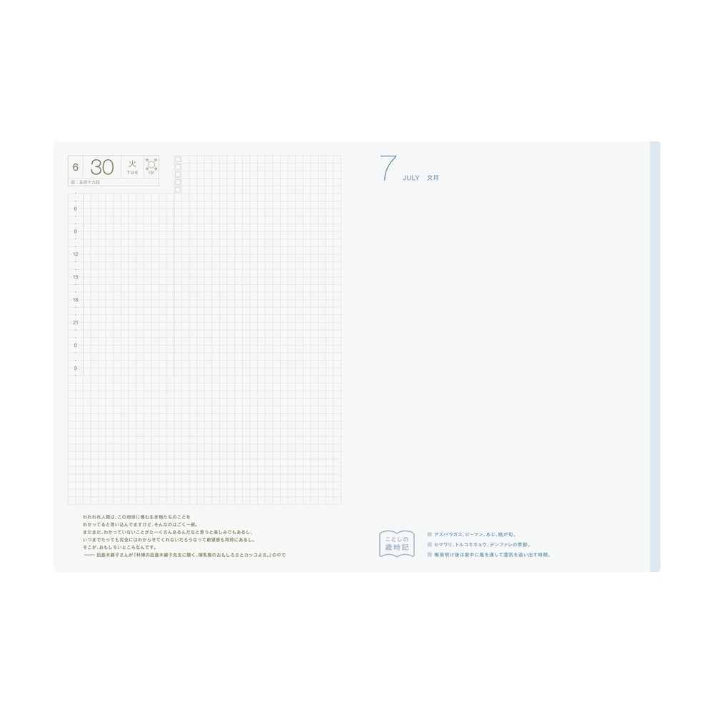 - ADVERTENCIA: no encaja bien con la funda COVER ON COVER A5 de Hobonichi. Recomendamos la funda de plástico transparente de MD Midori CODEX A5 o la funda HON A5 (queda un poquito holgada) para esta agenda.