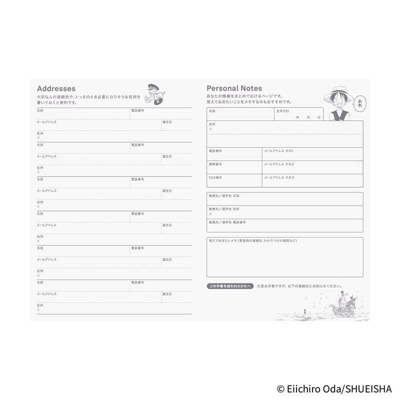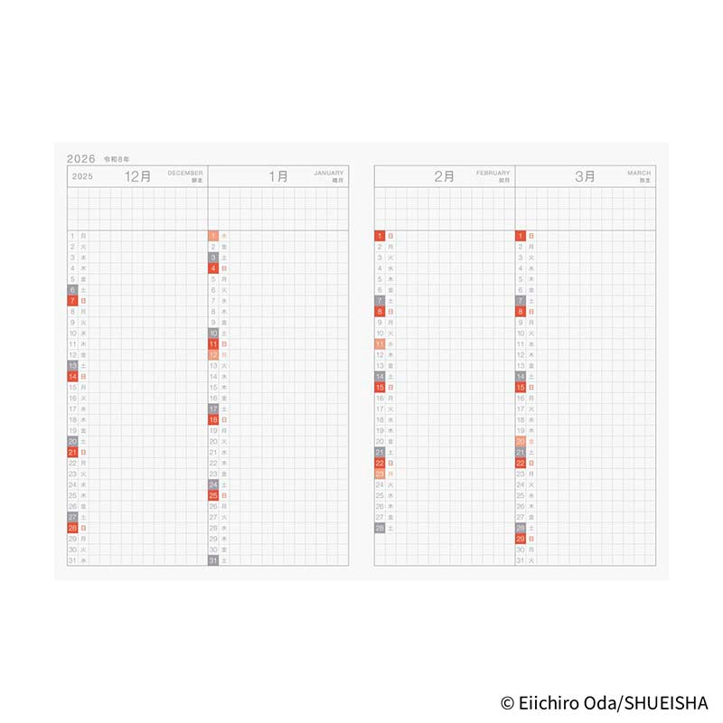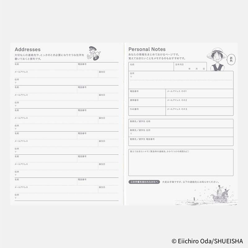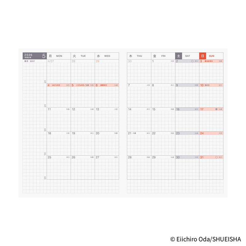 - Agenda interior Hobonichi Techo A6 versión japonés 2026 de ONE PIECE.