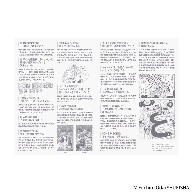 - Los detalles e inscripciones relacionadas con escenas y curiosidades de la serie de anime ONE PIECE MAGAZINE.