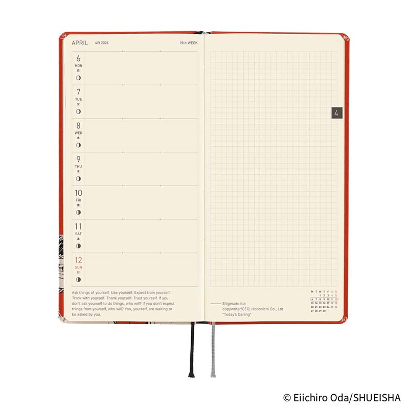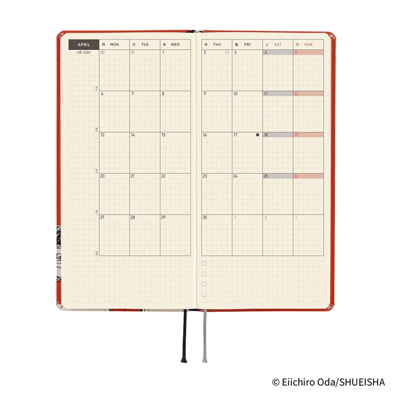 - Agenda Hobonichi Weeks (semanal) 2025, colección ONE PIECE magazine: Straw Hat Luffy (Red) 2025.