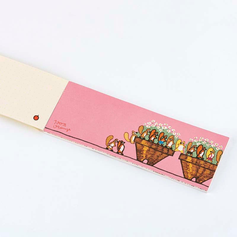 - Bloc de notas en formato apaisado en la que podrás disfrutar de una escena memorable del libro ilustrado Ohikkoshi, obra del dúo artístico 100%ORANGE.