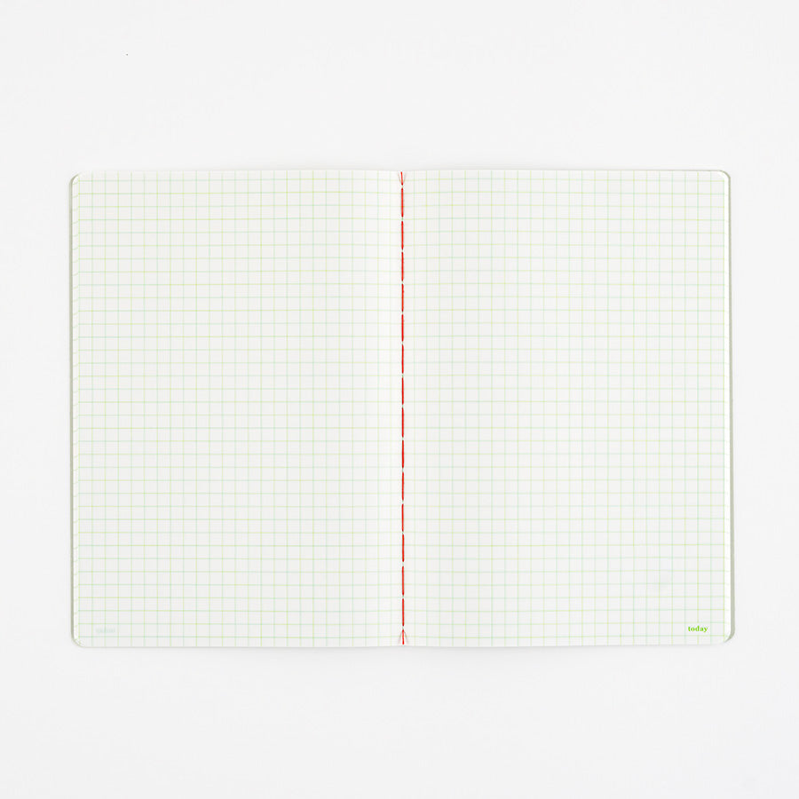 - Cuaderno tamaño B6 con el interior de cuadrícula de 5 mm impreso en verde.