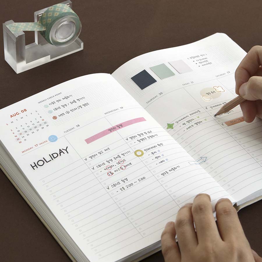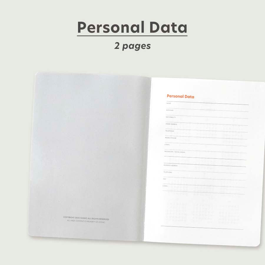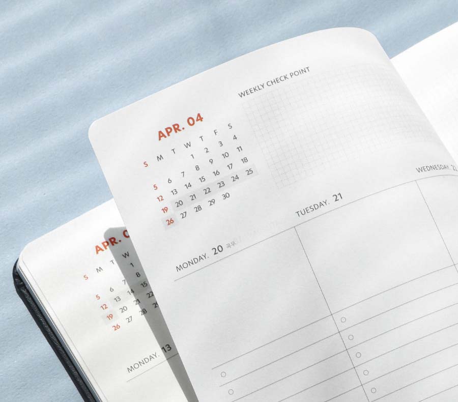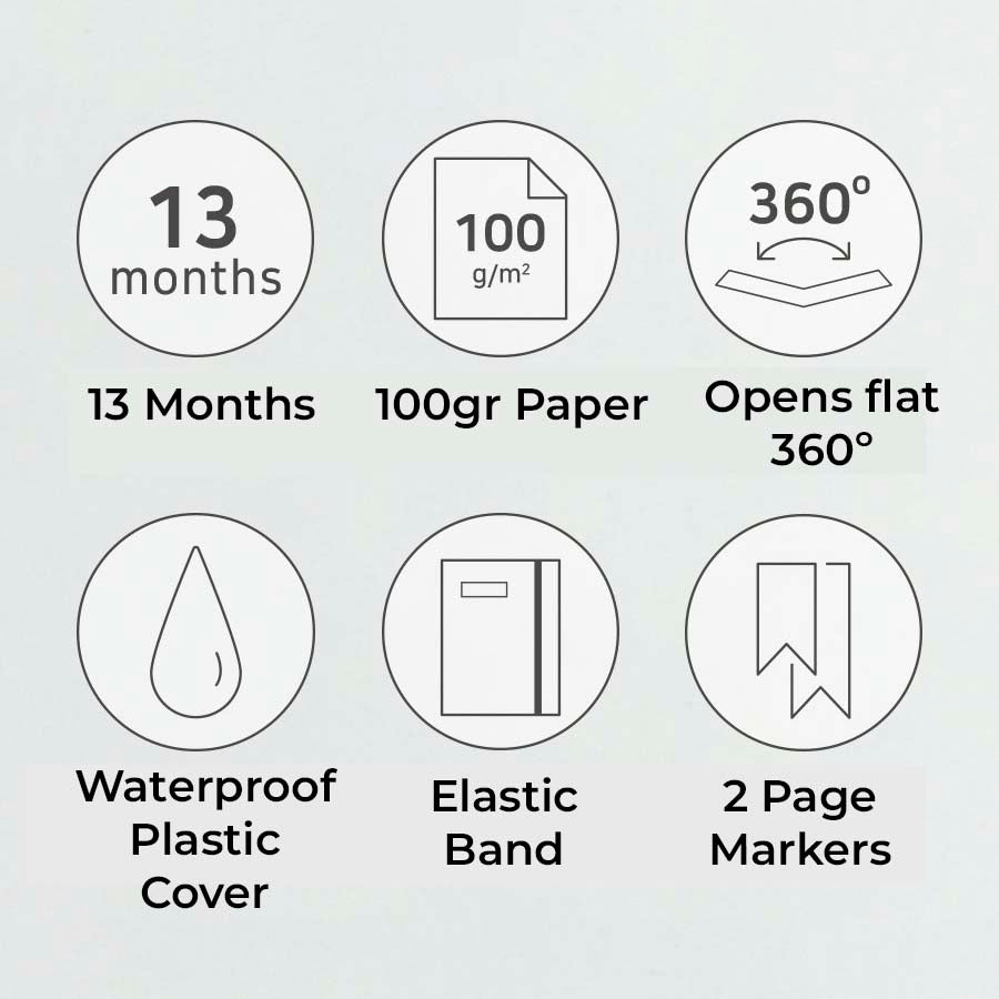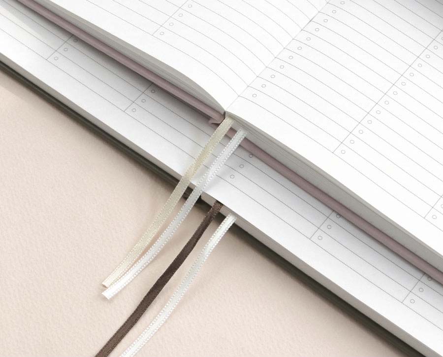- Encuadernación cosida que permite que la agenda se abra 360 grados con facilidad.