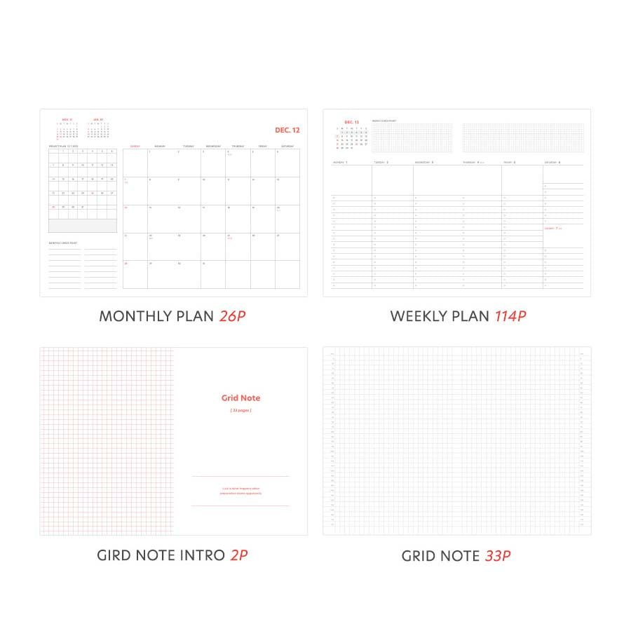 - Planificación semanal de Diciembre 2025 a Diciembre 2026: planificación en vertical, con separación para hacer listas de tareas.