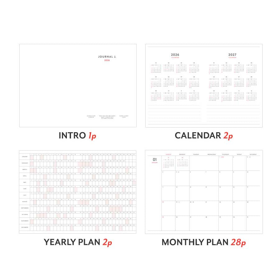 - Agenda coreana semanal Journal J 2026, tamaño B6.