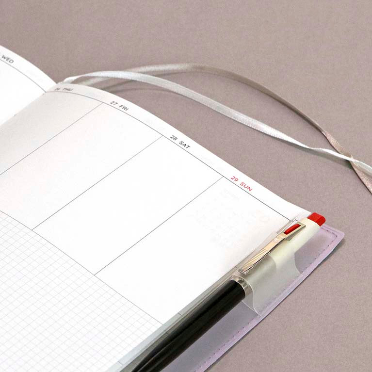 - El material de la portada es plástico PVC rígido y impermeable, que protegerá la agenda durante todo el año.