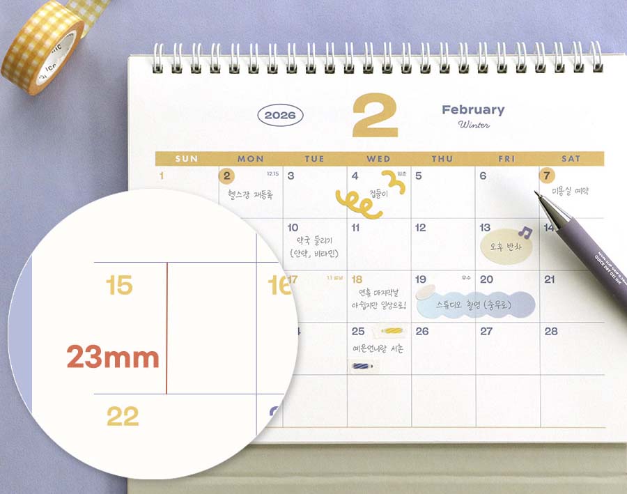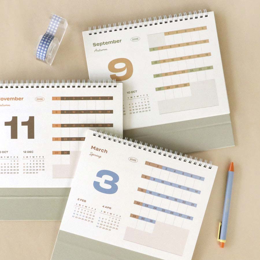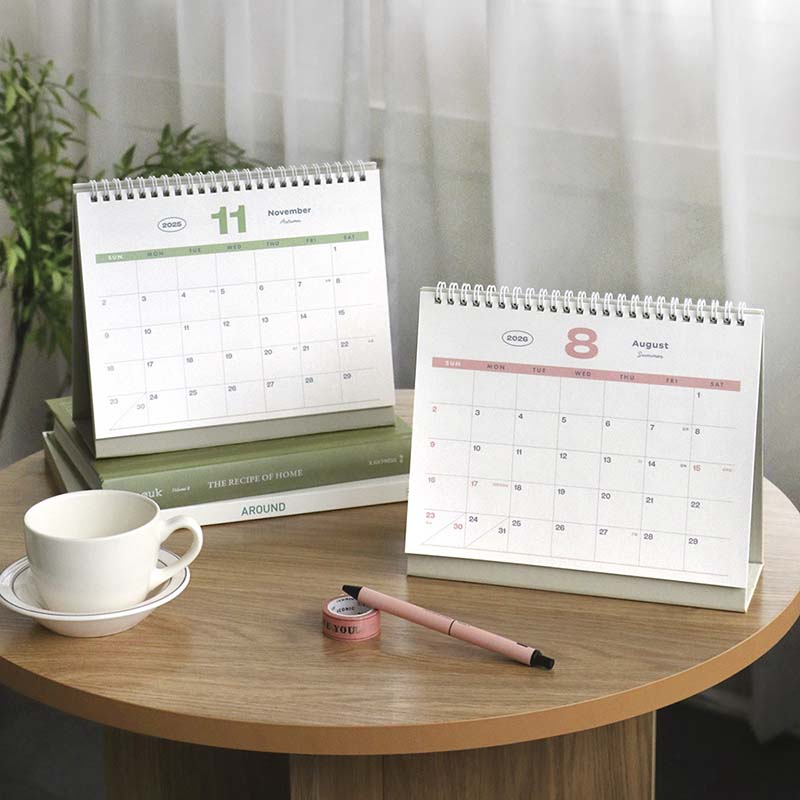 - Por cada mes, son 2 caras con calendarios diferentes (por delante y por detrás): uno con espacio para anotar y otro para seguir hábitos.