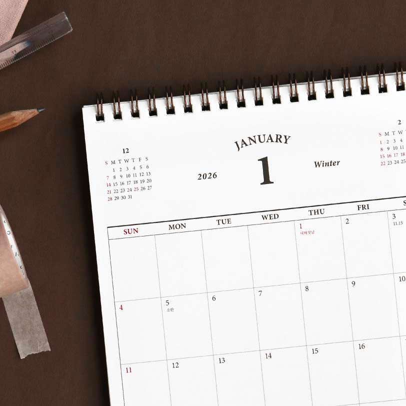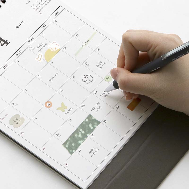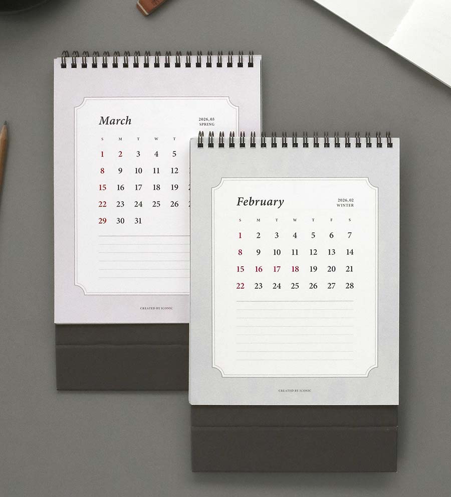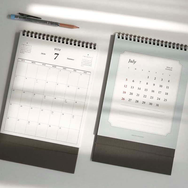 - Por cada mes, son 2 caras con calendarios diferentes (por delante y por detrás): uno con espacio para anotar y otro simple con las fechas.