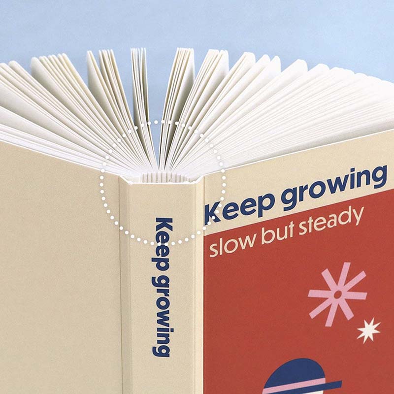 - Encuadernación cosida y el lomo está despegada de la portada, detalle que hace que el cuaderno se abra con más facilidad.