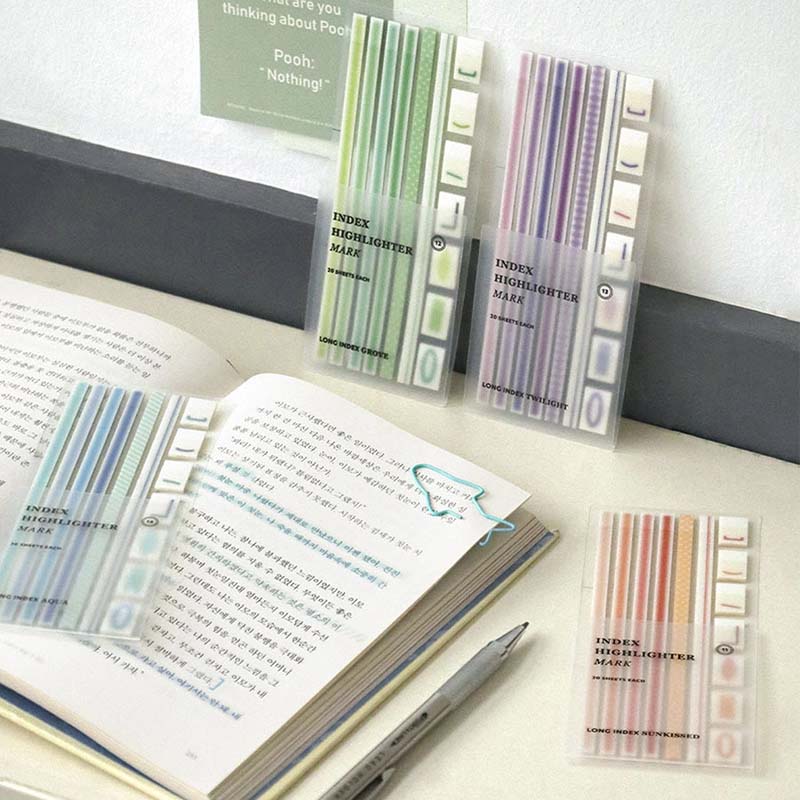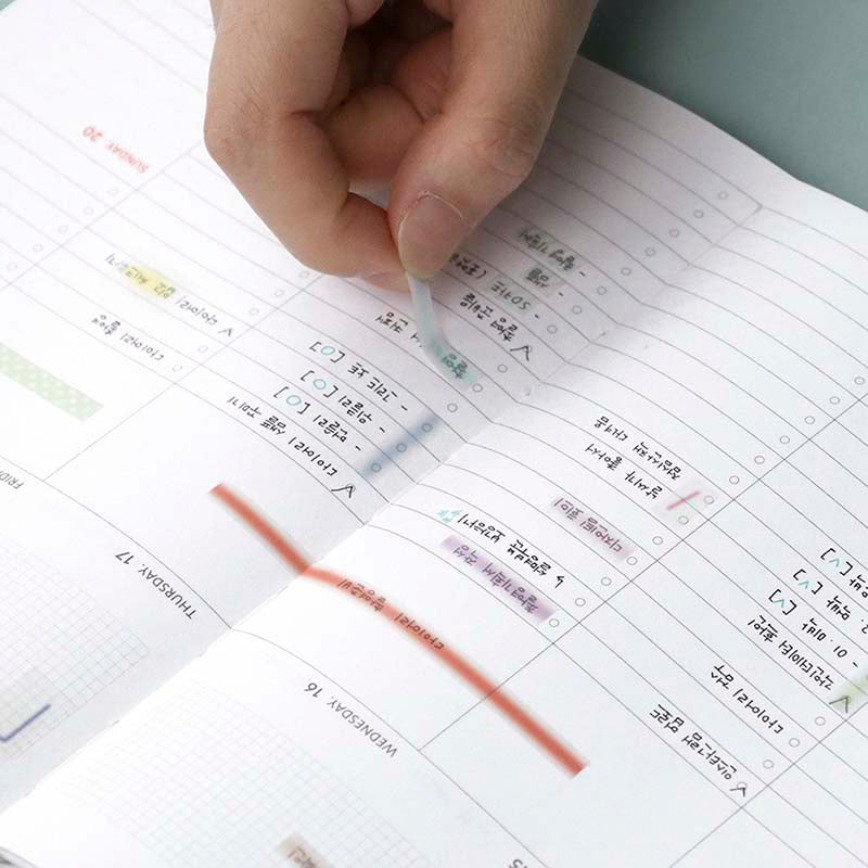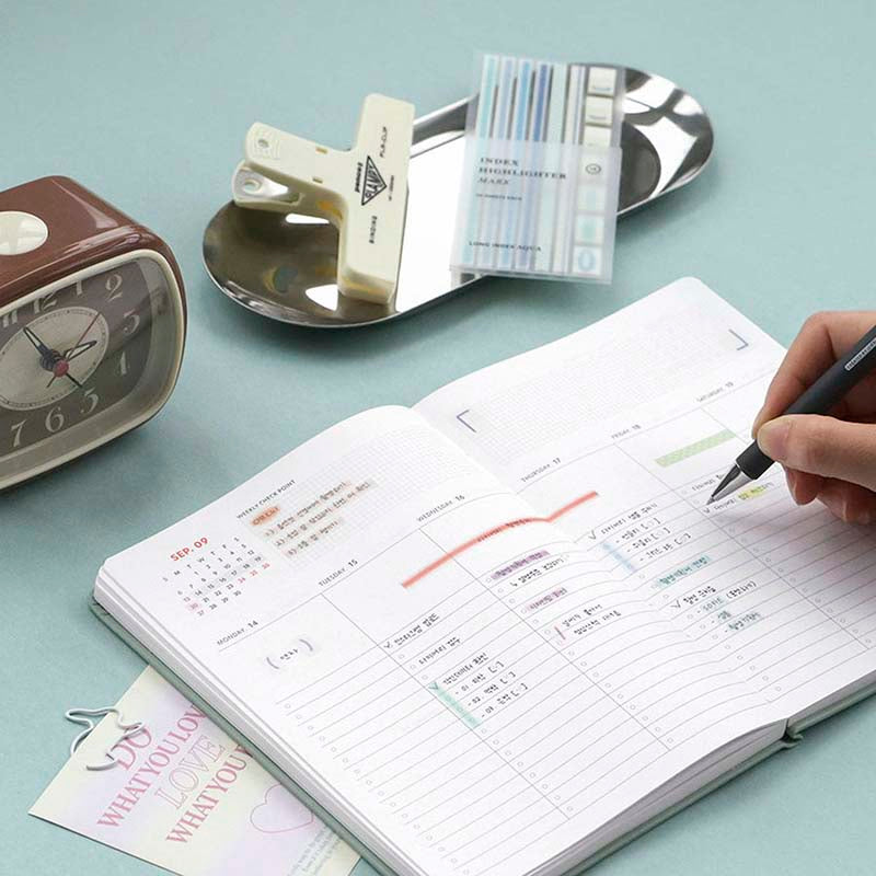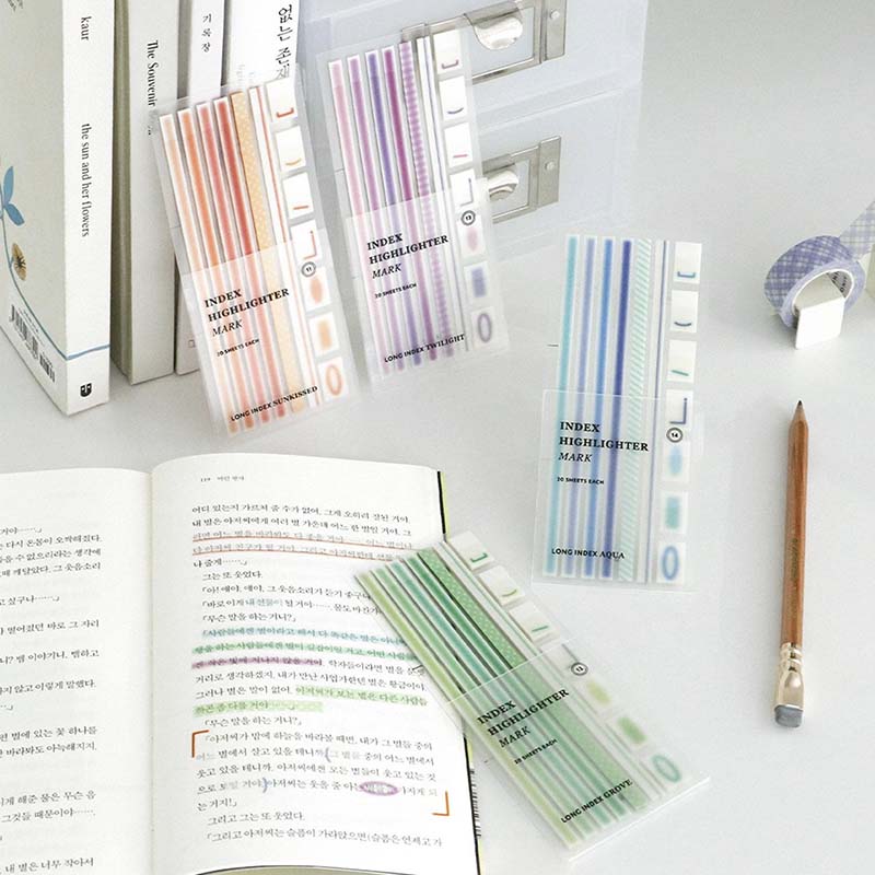 - Marcadores transparentes con color para subrayar, señalar y crear pestañas en libros, cuadernos y agendas