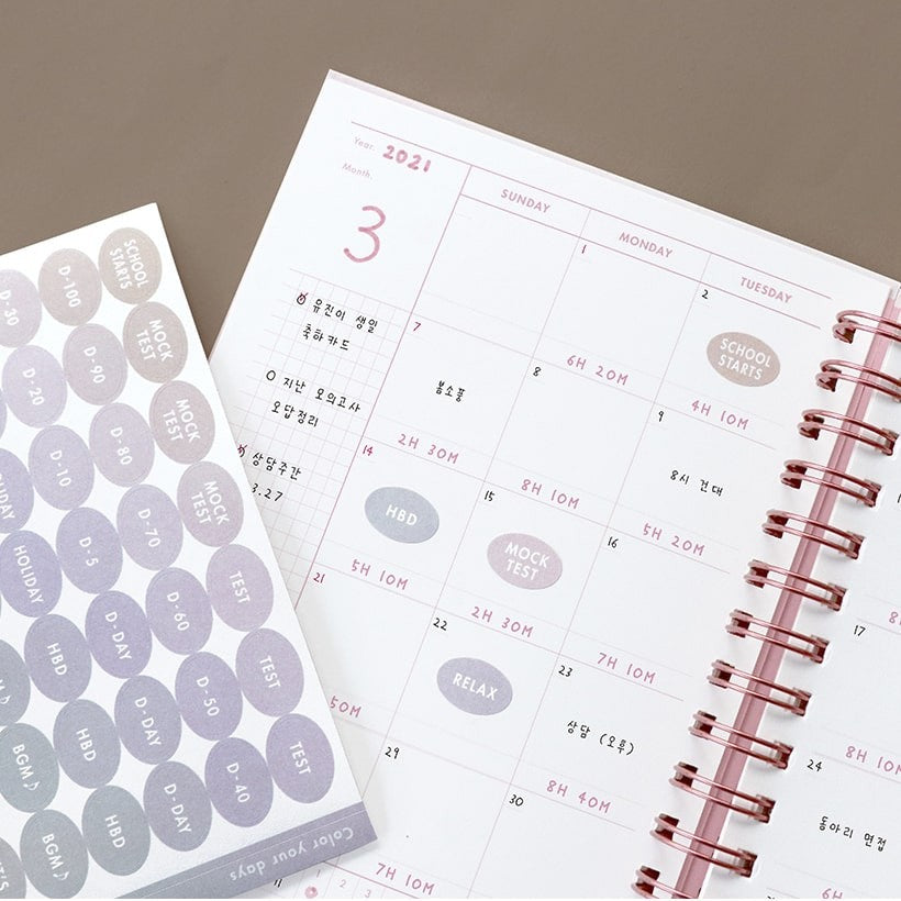 - Incluye una lámina de pegatinas para marcar los días más importantes.