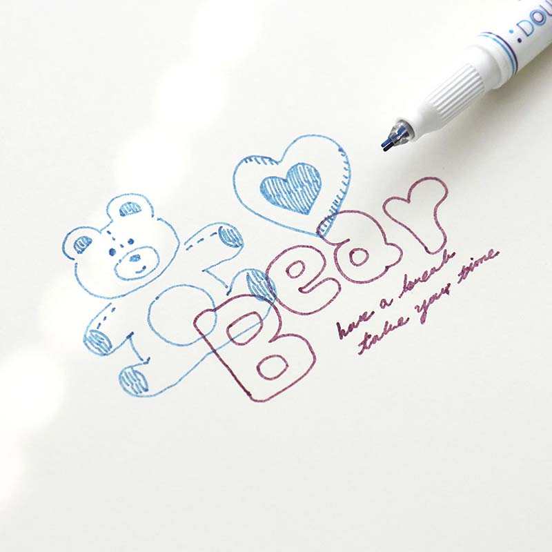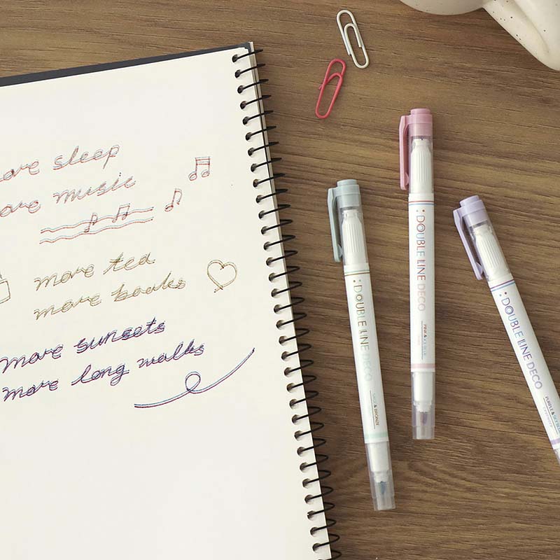 - Con la punta fina doble, puedes escribir un trazo doble, o escribir normal apoyando solo una de las puntas.