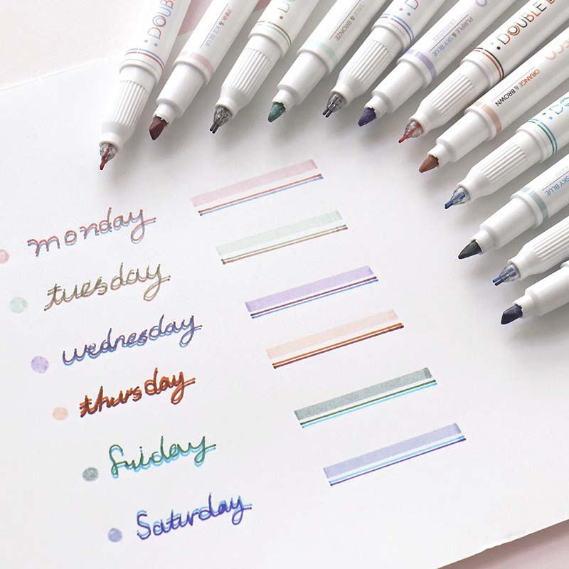 - Los rotuladores tienen 2 puntas: una punta biselada de subrayador y una punta fina doble.