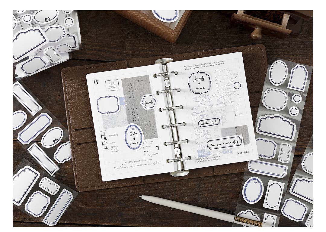 - Pegatinas pre-recortadas de etiquetas vintage en formato rollo.