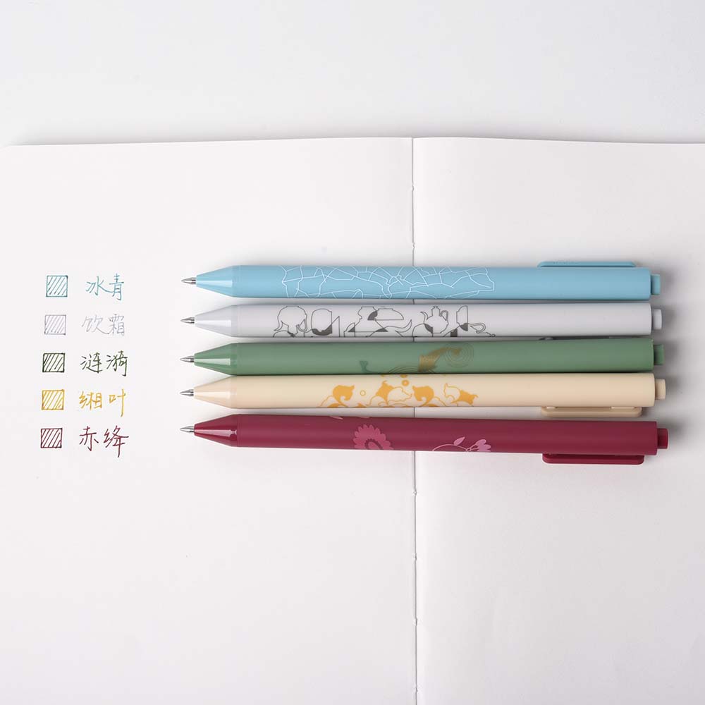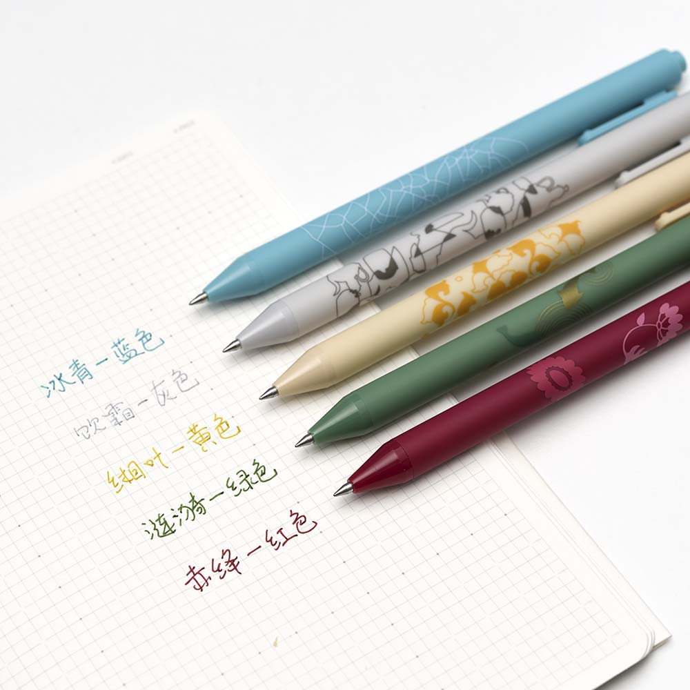 - Set de 5 bolígrafos de colores de estilo tradicional chino.