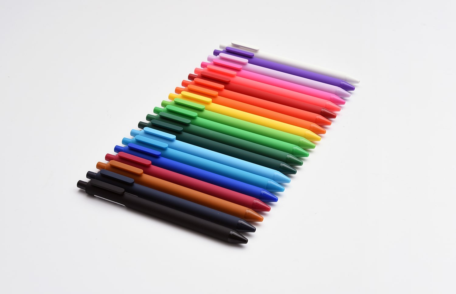 - Tintas de los colores correspondientes al color del bolígrafo (excepto el bolígrafo blanco, la tinta es de color marrón).